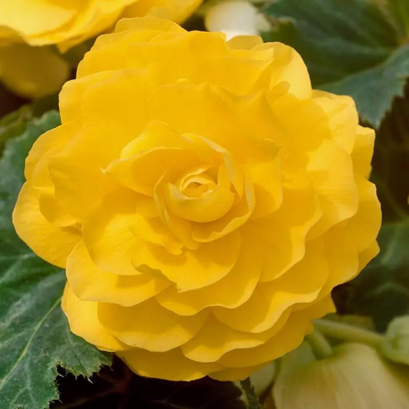 Large Flowered 'Yellow' Begonias are excellent for adding bright pops of colour to your summer container displays. Bold lemon-yellow double blooms can reach up to 15 cm in diameter. Our begonias flower for months on end, from May until at least September, featuring lush, dense green foliage.