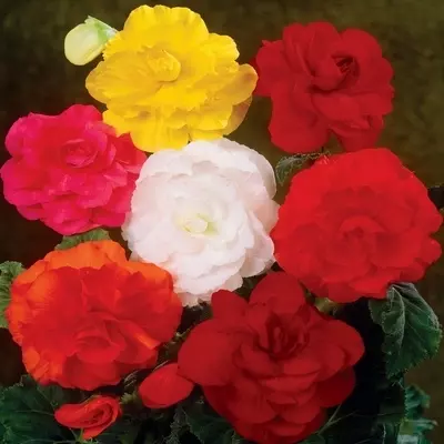Large Flowered 'Mixed Colours' Begonias are excellent for adding bright pops of colour to your summer container displays. A bold palette of pink, red, orange, white and yellow double blooms can reach up to 15 cm in diameter. Our begonias flower for months on end, from May until at least September, featuring lush, dense green foliage.
