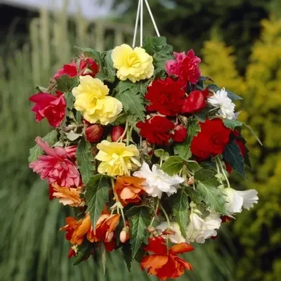 Pendula Cascade 'Mixed Colours' Begonias are excellent for adding a rainbow of colour to your summer displays. Featuring a double frilly blooms which can reach up to 15 cm in diameter and cascade over containers. Our begonias flower for months on end, from May until at least September.