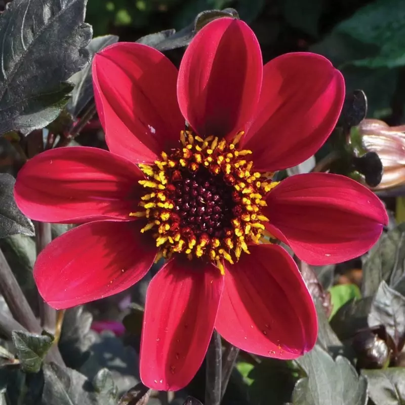 This dahlia delivers natural beauty, filling spaces with vibrant life and energy. Growing to a height of 100 cm, single flowered dahlia 'Romeo' delivers natural beauty, filling spaces with vibrant life and energy.