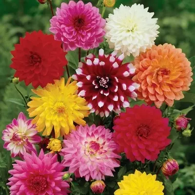 A wonderful medley of decorative dahlia varieties, this collection contains top-sized tubers which will produce magnificent blooms in beautiful shades. Plant the tubers in late spring to create a colourful tapestry of long-lasting colour.