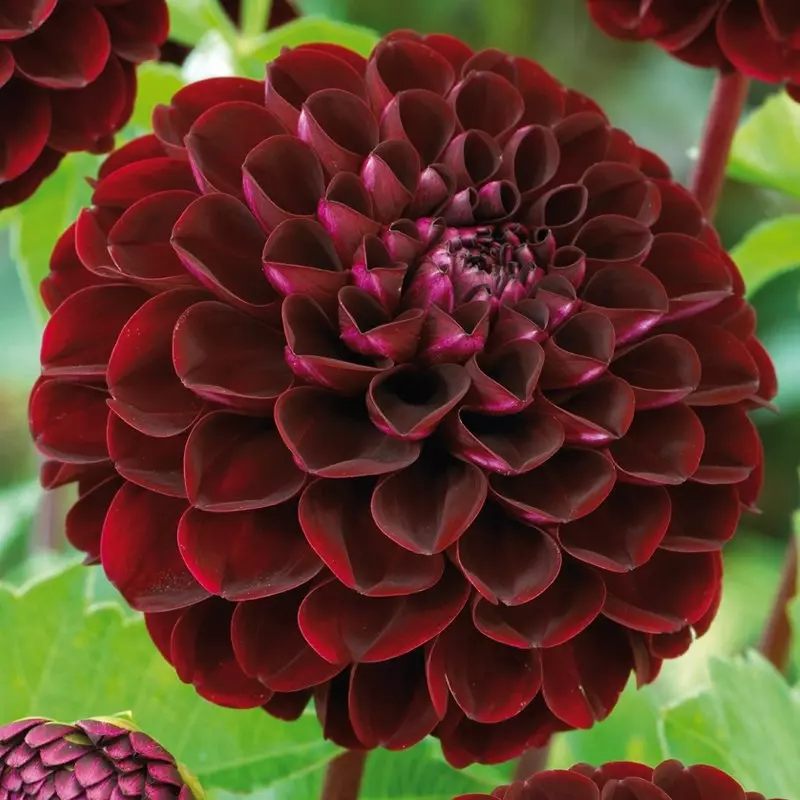Pompom Dahlia 'Dark Spirit' is a powerhouse of drama, a mesmerizing shade of near-black burgundy and perfectly shaped spheres. For gardeners who love bold colour in a refined form, pompom dahlia 'Dark Spirit' is a captivating choice. Flowers abundantly throughout the season and grows to 80 cm tall. A stunning contrast against surrounding plants in the border.