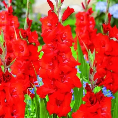 Clusters of hot-red, velvet florets will burn brightly in borders during the latter months of summer, along elegant stems of handsome Large Flowered Gladioli ‘Oscar’. This lipstick-red, showy gladioli is an eye-catching choice for a jewel garden and is certain to impress in the vase.