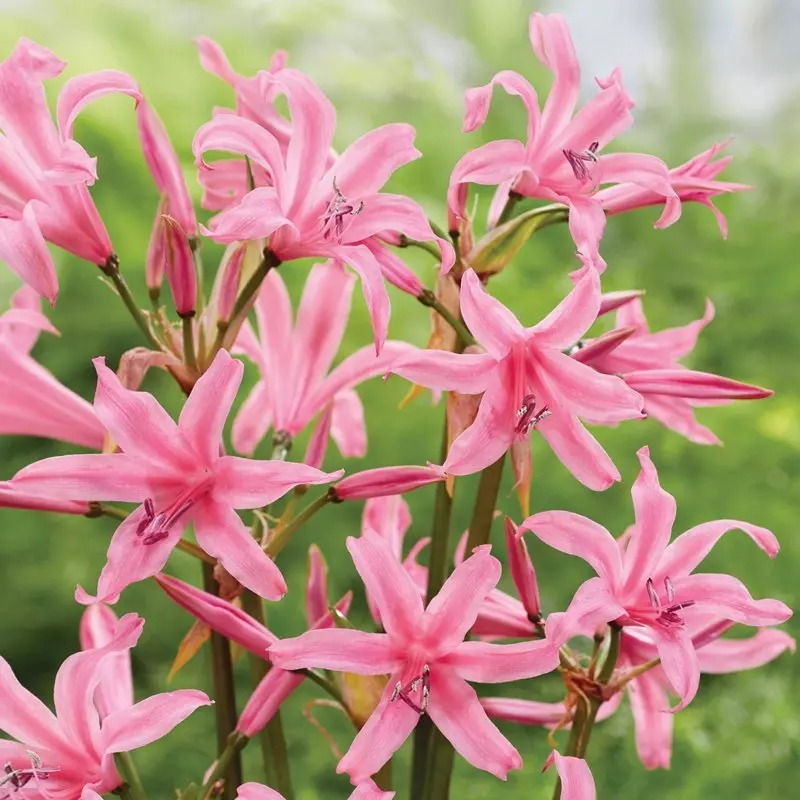 The genus name ‘Nerine’ refers to ‘Nereids’ – nymphs of Greek mythology – and Nerine bowdenii ‘Amandi’ is fittingly fairy-like in its delicacy and charm. With wavy, sugar-plum petals swept back like wings, the dancing blooms are an enchanting sight late in the season.