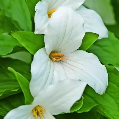 Twinkling in shady corners of the garden, the broad, milky-white blooms of Trillium ‘Grandiflorum’ are set off beautifully by a backdrop of lush, ribbed foliage. ‘Trillium’ means ‘triple lily’, in reference to the petals, bracts and leaves being produced in distinct trios.