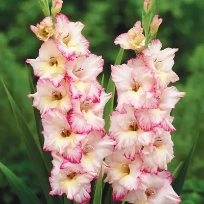 Perfect for cutting and adding height and drama to floral arrangements. For the longest vase-life, cut gladiolus 'Priscilla' just as the lowest ruffled blooms begin to unfurl.