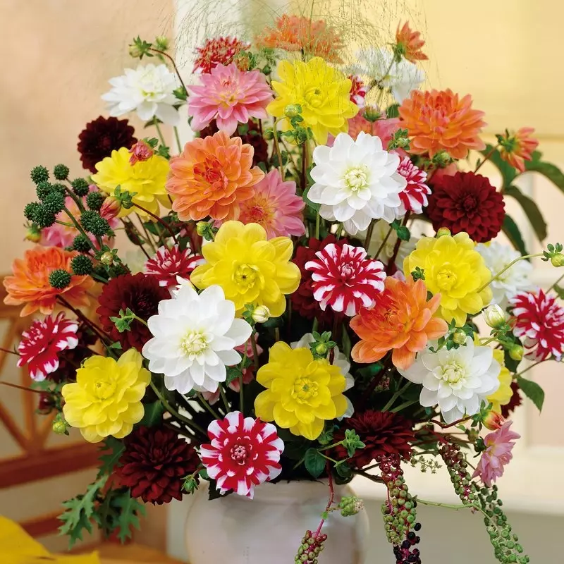 Add colour, height and structure to your garden borders with this vibrant assortment of dahlias. All highly productive and suitable for cutting, the dahlias within Dahlia 'Mystery Mix' will astound you with their interesting, textured blooms in a rainbow of beautiful shades.