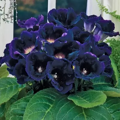 Rich purple-blue petals generate an opulent display with Gloxinia 'Hollywood'. Each velvety bloom exudes drama and elegance, making this outstanding for indoor growing and windowsills in warm weather.