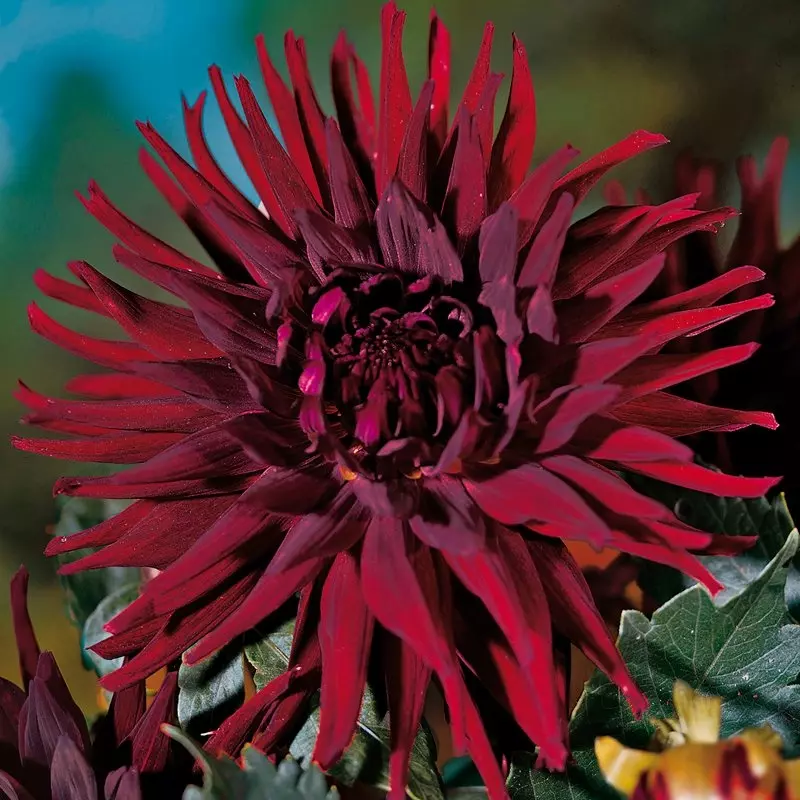 Cactus Dahlia ‘Nuit d’Ete’ features deliciously rich dark red, almost-black, recurved velvet petals. Standing proudly at 100 cm on tall stems, in the garden the blooms look brooding and dramatic, flowering from July until first frosts.