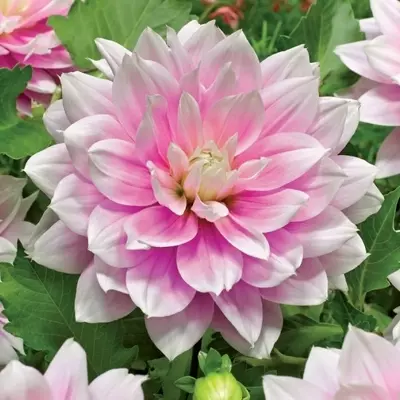 Unbelievably beautiful Decorative Dahlia ’Evanah’ reminds us of a perfect, pink waterlily. The lavish flowers bring an effortlessly elegant feel to the garden, with layers of lilac-pink suffused, soft white petals.
