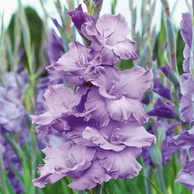 Large Flowered Gladioli ‘Milka’ produces elegant spires of ruffled, soft-lilac blooms over several weeks in summer.