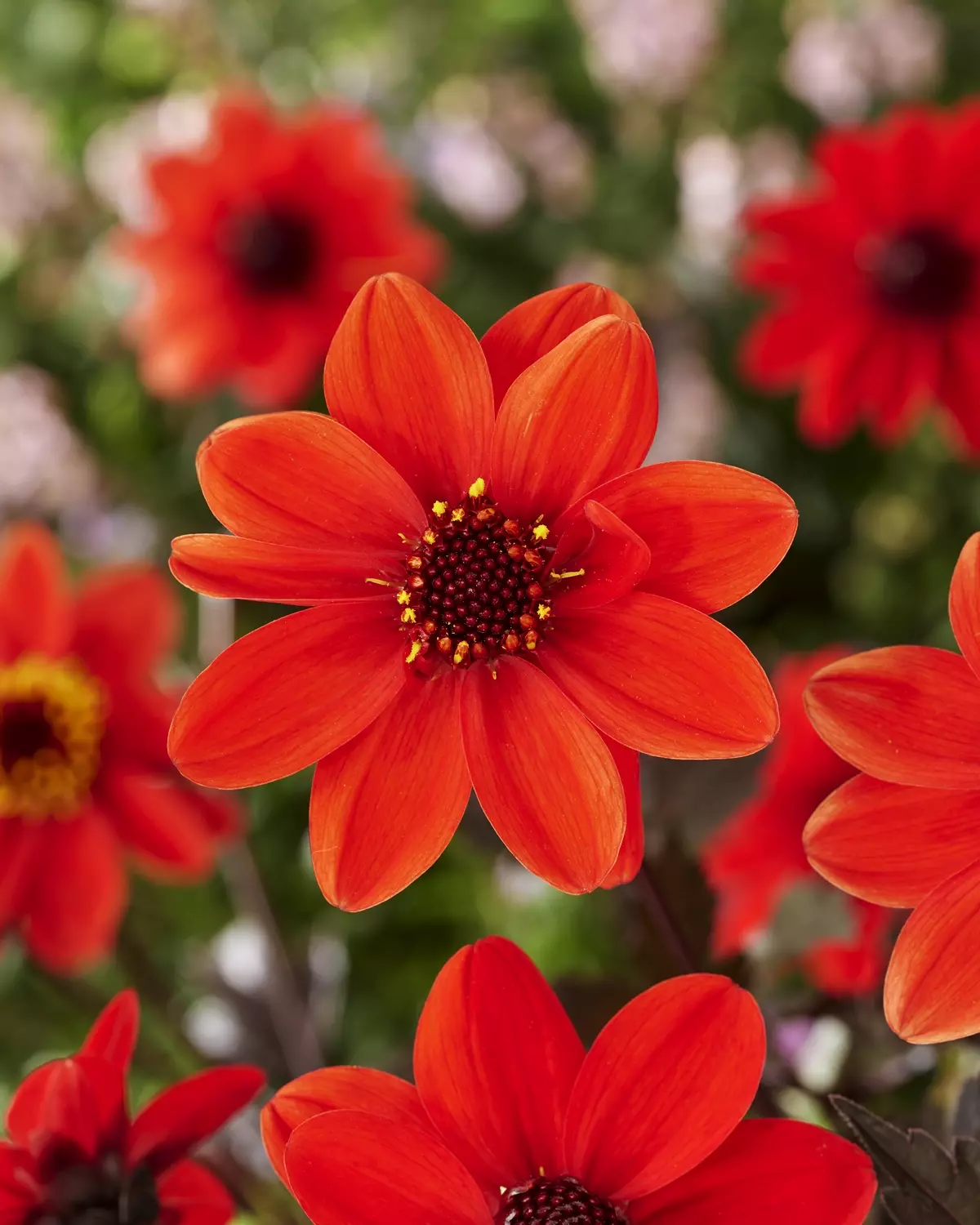 Inviting pollinators and producing masses of blooms throughout the long summer to autumn season, even with its small stature, Single Flowered Dahlia 'Pulp Fiction' still dares to be different - intense, confident and instantly iconic.