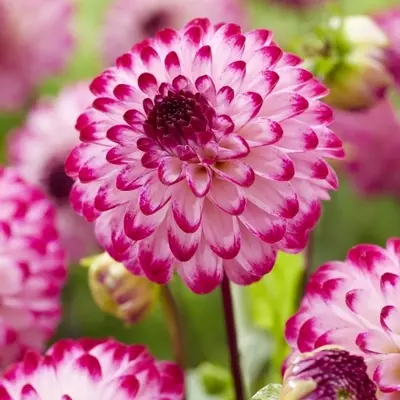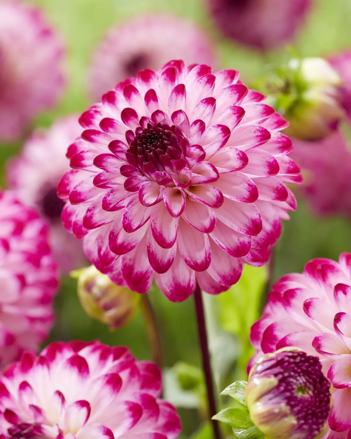 Despite its small size, pompom dahlia 'Little Robert' makes a big impression, puts on a prolific display with an abundance of flowers from July to the first frosts of autumn. In borders and containers, arrangements or posies a perfect addition to the garden. Grows to a height of 80 cm.
