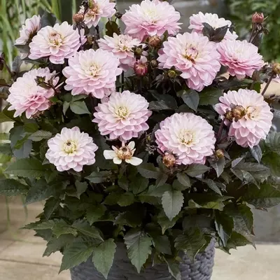 Invite a gentle chorus of colour into your garden with Dahlia ‘Melody Harmony’. A compact variety with blooms that open in pale shades of lilac, against a creamy white background and at the centre a hint of yellow.