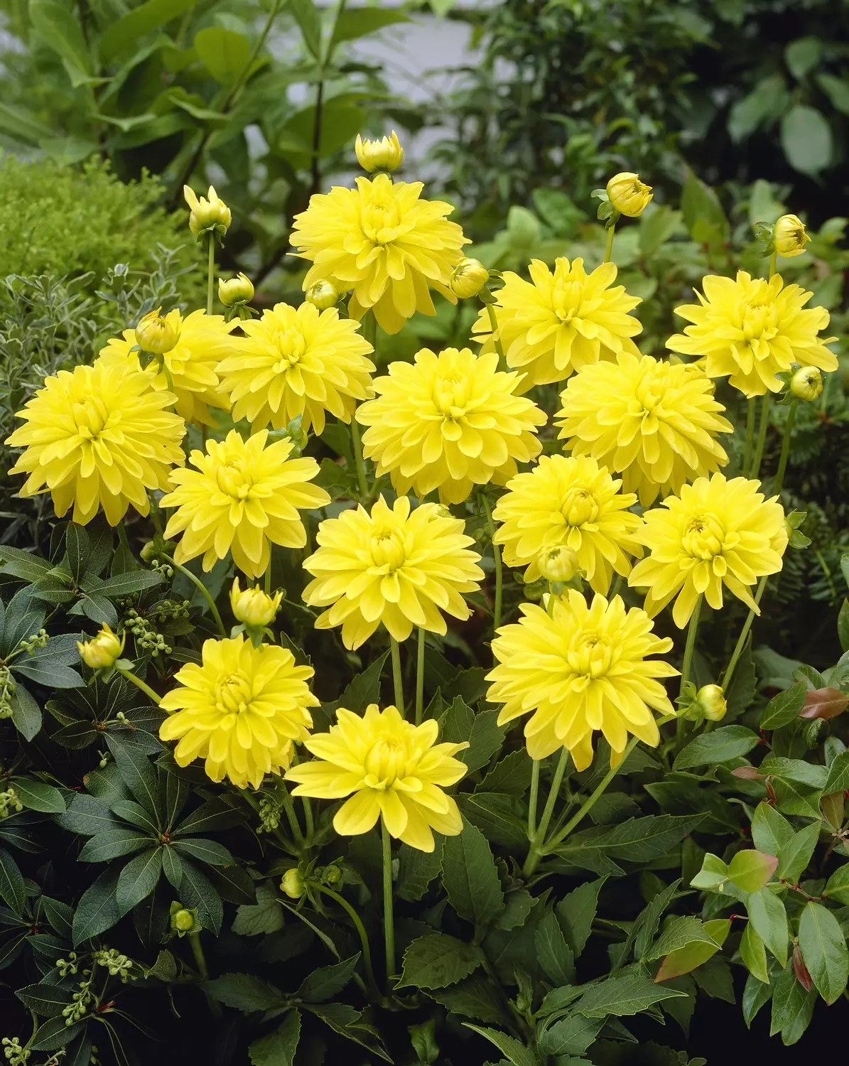 Dahlia ‘Melody Latin’ offers an impressive display even in smaller spaces. This compact upright variety is celebrated for its glowing yellow blooms, each one perfectly rounded with smooth, full petals that create a warm, sunlit presence from the moment they open.