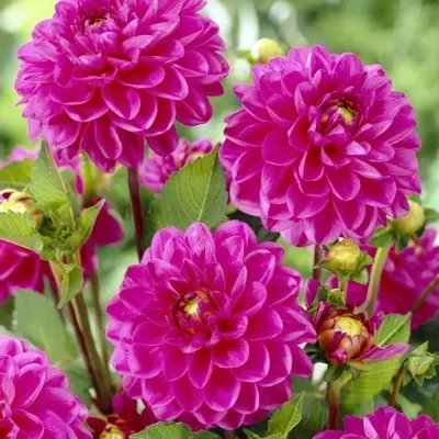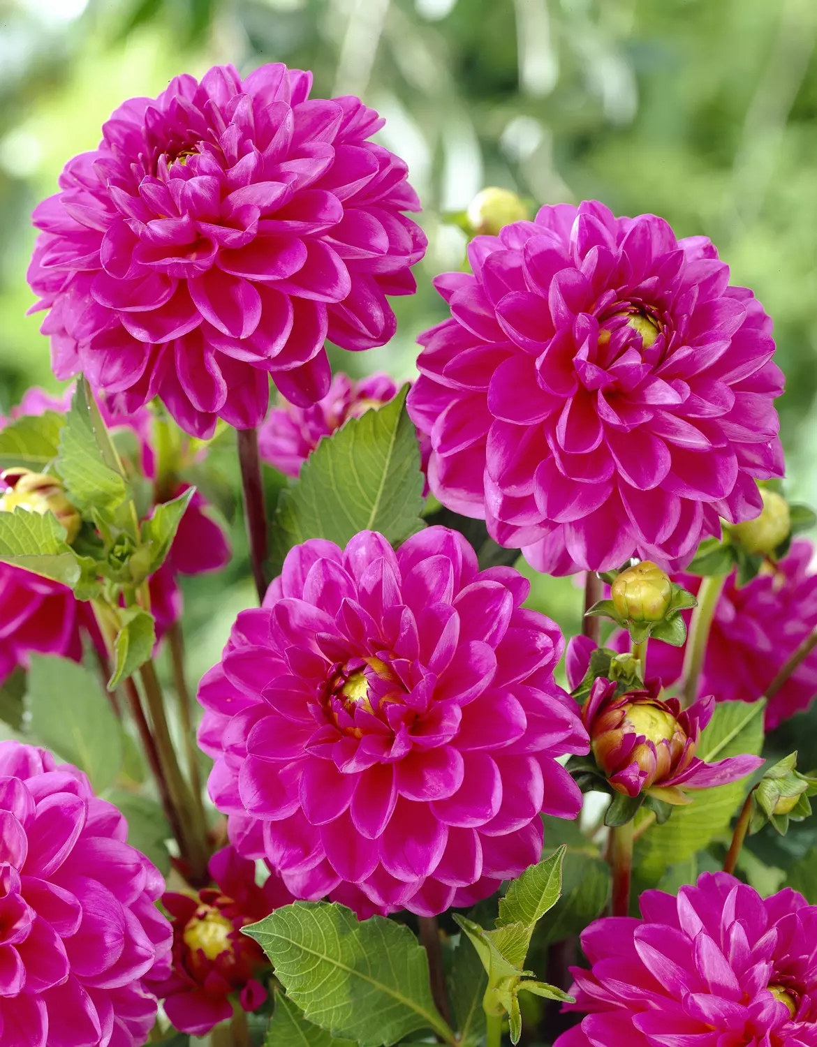 Dahlia 'Stratos' luxurious hues is a show-stopping variety known for its rich, velvety purple-pink blooms. Each flower is lush and layered, with a soft sheen that catches the light.