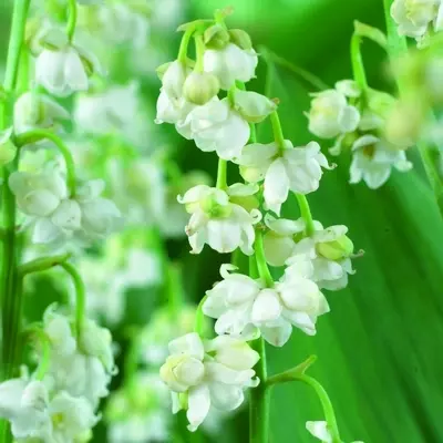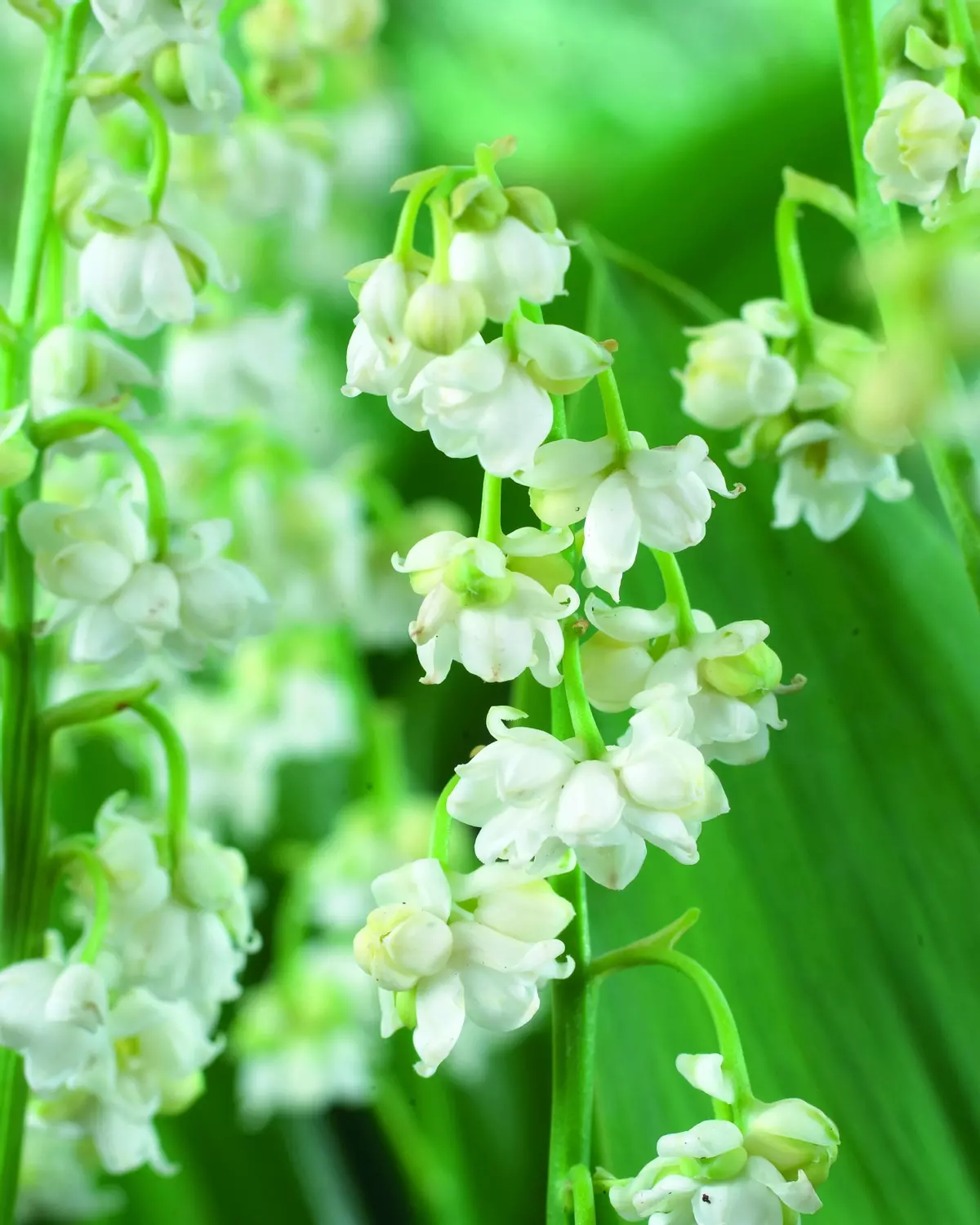 Convallaria 'Majalis Prolificans', is a double form of Lily of the Valley and an enchanting delight. Creamy white double scalloped bells nod in the breeze against lush green foliage. Highly scented and beautifully textured, delivers twice the charm of its single-flowered counterpart.
