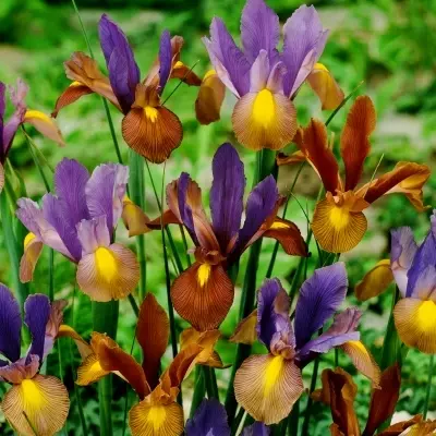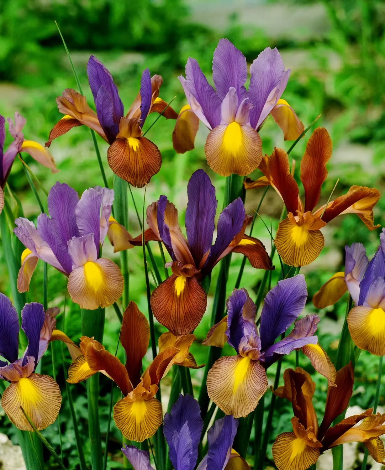 A wonderful balanced mix of blue, bronze, lilac and purple, creating a luxurious warm-toned display. Iris 'Tiger Mix' is hardy and reliable in borders or as cut flowers. Best in full sun with well-drained soil. Plant deeply and enjoy consistent, eye-catching returns.