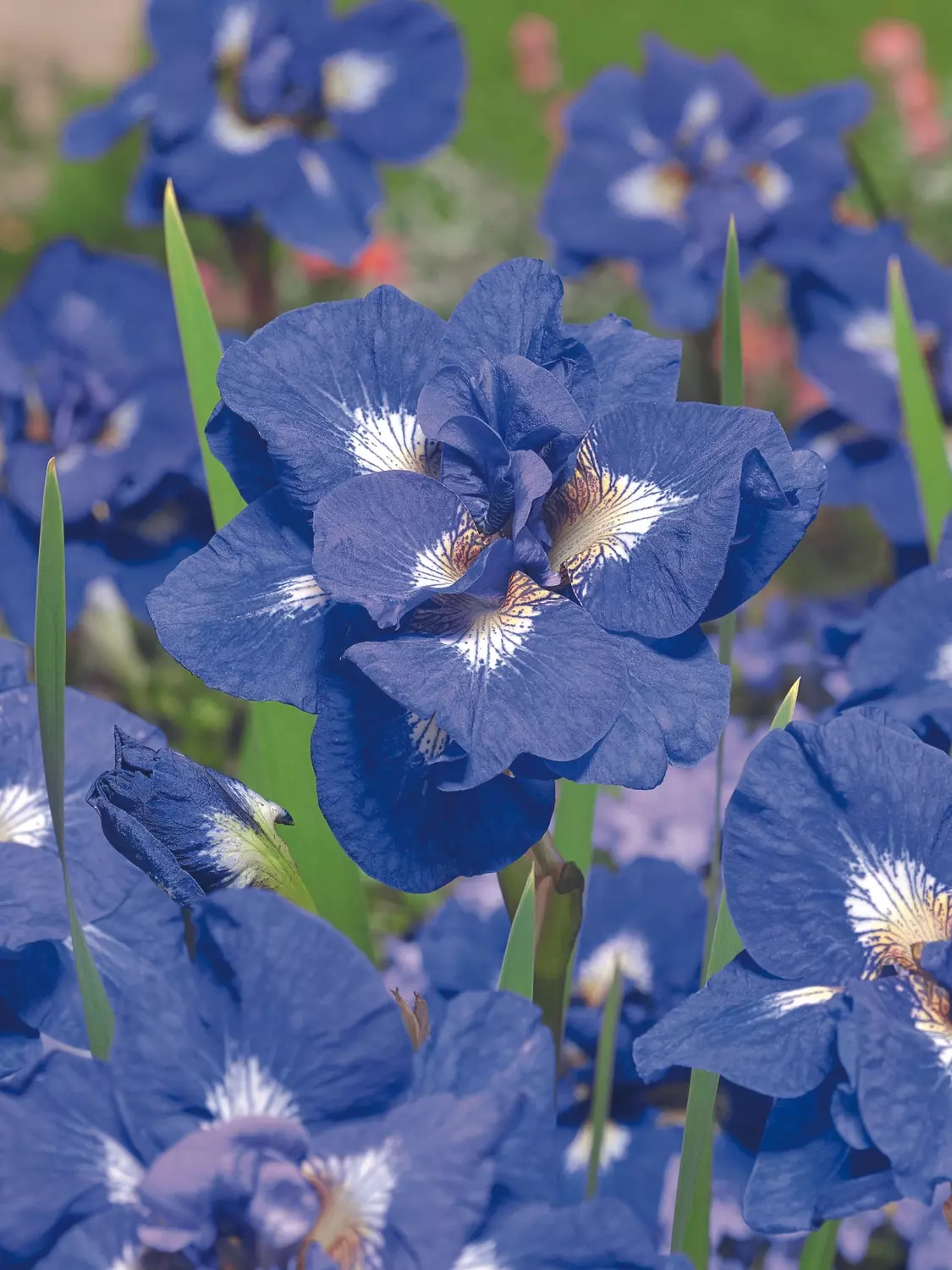 Iris Sibirica ‘Concord Crush’ is a striking iris featuring fully double, richly ruffled blooms in violet-blue and pale yellow centre. Velvet-like texture gives the plant a luxurious this presence as it flowers in June and July.