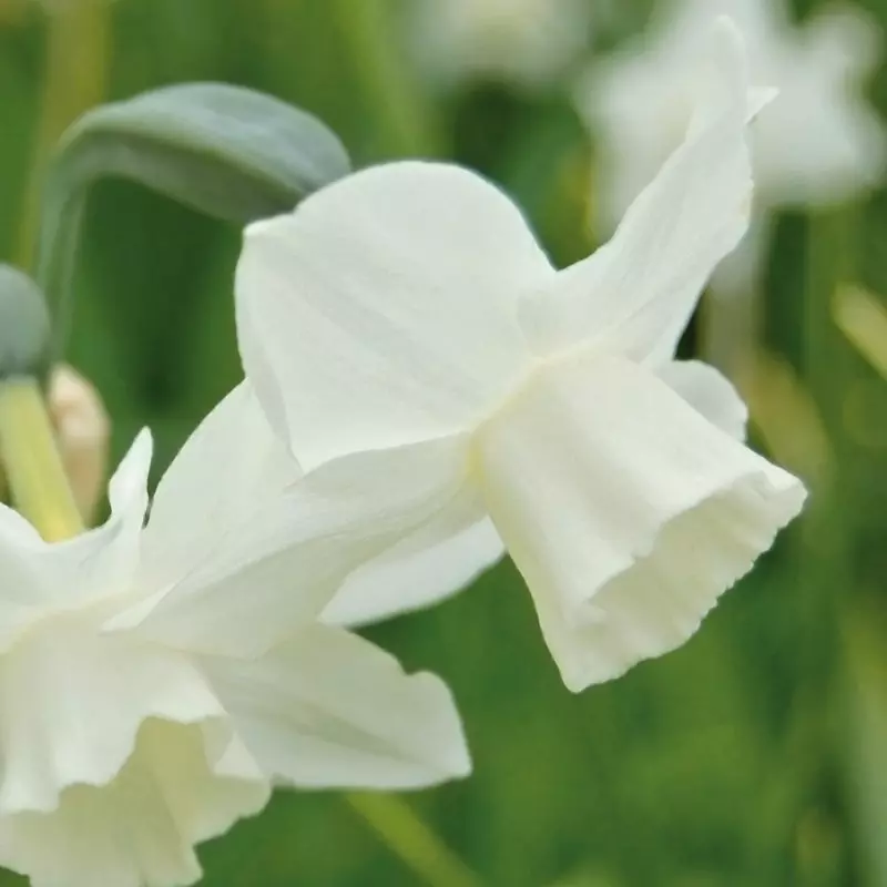 The chic, understated, refined blooms of Jonquilla Narcissus ‘Pueblo’ belie the vigorous, prolific, weather resistant qualities which have earned this outstanding variety an RHS Award of Garden Merit. Immaculate, milk-white petals with a pale, vanilla cream centre sit atop fine, grass-like foliage which merges easily amongst lawns and borders.
