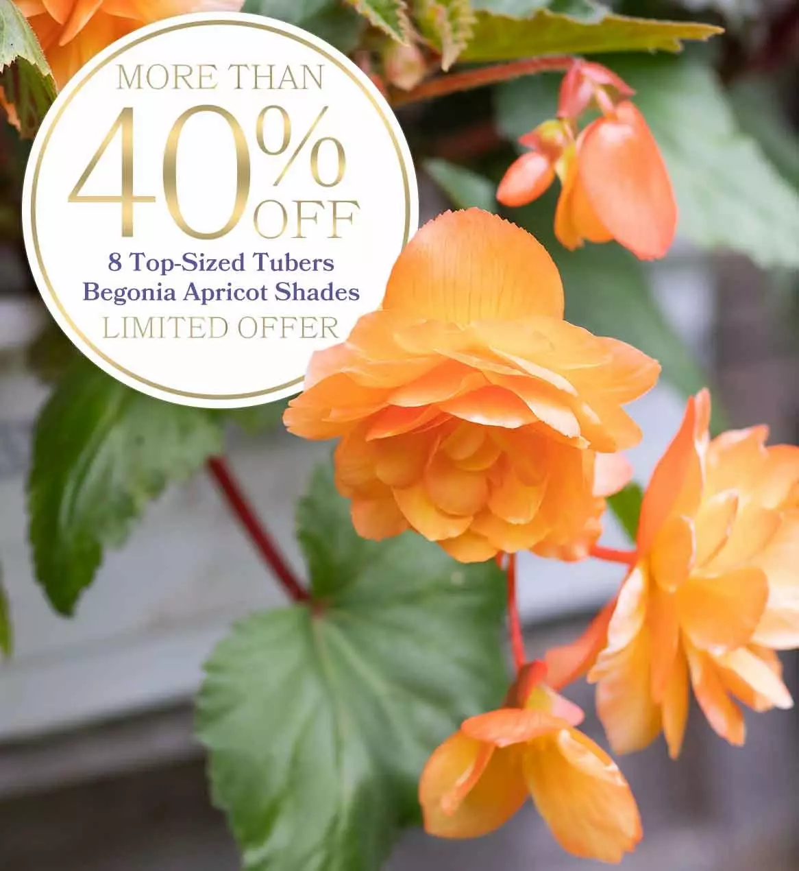 This offer is for EIGHT top size 5/6cm tubers of Begonia Apricot Shades. Retail price for these top-quality tubers normally £32.11 with postage, Your price WHILST STOCKS LAST is £18.50 with FREE delivery.