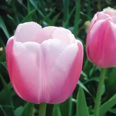 The beguiling blooms of ‘Ollioules’ begin rose-pink and fade to silvered ivory edges as they mature. The ombre-effect petals match the soft pinks of cherry and apple blossom which emerge around the same time. Create a gorgeous, delicate display by planting these bulbs in drifts amongst borders and grouping them within containers. One of the best varieties for floral arrangements and bouquets, this Darwin Hybrid boasts long, graceful stems and enormous, eye-catching flower heads. Never failing to perform, ‘Ollioules’ has been granted an RHS Award of Garden Merit. These versatile, robust tulips are classed as perennials, reappearing in abundance each season.
